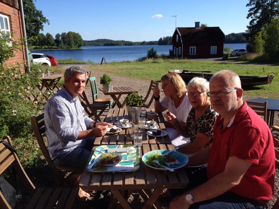 Helena ringde mig igår från arbetet, sin sista arbetsdag före semestern och sa att hon ville kidnappa mig samt att jag skulle vara klar att åka när hon kom från jobbet. Vi rullade iväg mot ett för mig okänt mål, först väg 195 söder ut och sedan vidare ut på riksväg 40 mot Göteborg. Efter ett par mil avtagsvägen mot Bottnaryd och därifrån vidare mot Svansö. Strax före Svansö stannade vi en stor lada med texten ”OPEN NEW DOOR” vid gården Tokebo 1. Väl ute ur bilen såg jag att våra vänner Tinna o Micke samt Tinnas mamma redan satt vid ett bord och åt mat. Men det var ingen helt vanlig mat som serverades här utan deras koncept var rawfood. För er som inte vet vad rawfood är så kan det kort beskrivas ekologisk mat som inte har blivit upphettad. Det här är ett område med mat som Helena gillat starkt och varje dag gör hon själv olika Smoothie till sig själv. Jag själv är betydligt mer skeptiskt till detta och vill gärna ha en rejäl grillad köttbit om jag får välja själv. Men nu var jag kidnappad så det var bara att ”gilla läget”