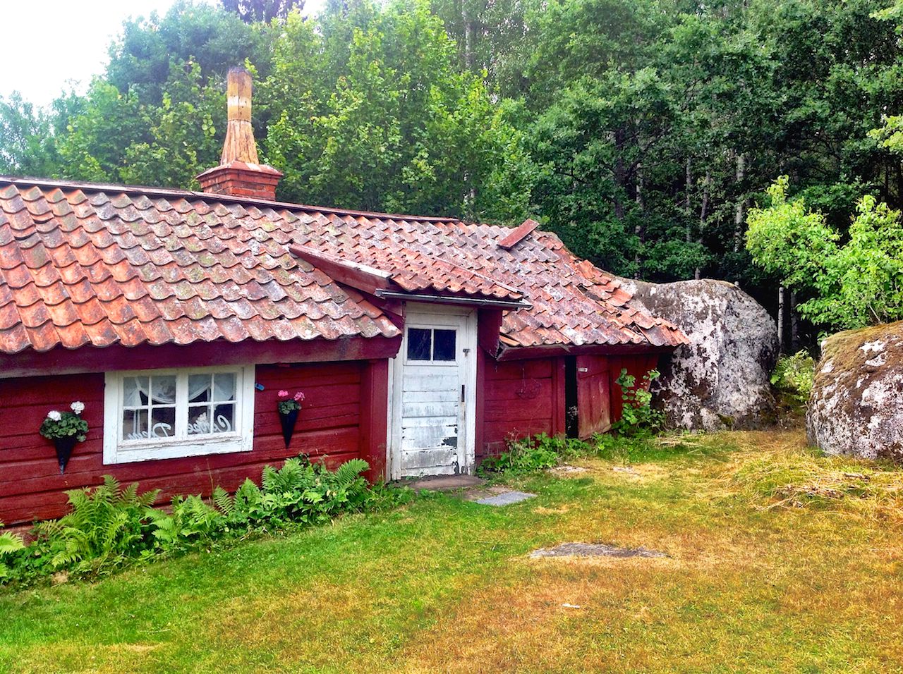Jag har svårt att tänka mig att det finns något liknande torp någon annanstans, åtminstone något som fortfarande står kvar än idag. Men om  jag fel där och någon läsare känner till något liknande så är jag tacksam om ni hör av er och berättar detta för mig. Det här torpet är byggt mot en stor sten och denna sten utgör ensamt den ena gavelväggen till torpet.