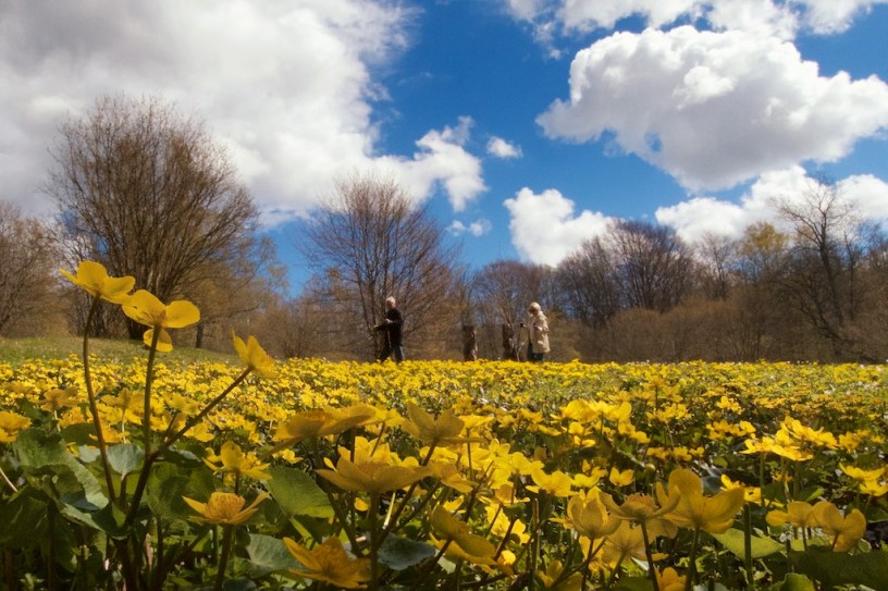 Jag rekommenderar att man åker till Stocklycke Ängar på Omberg där man har möjlighet att följa de olika blommor som blommar på ängarna i några olika perioder. Den första blomningsperioden börjar med Blå- och Vitsipporna. Därefter kommer Gullvivorna och Kabbelekans blomningstid. Inte långt därefter kommer sedan Liljekonvaljer och andra orkidéer som även de blommar ute på ängarna vid Stocklycke. Vi var där för några veckor sedan och såg just Blåsipporna blomma för fullt. Idag när vi var där fanns lite vitsippor kvar men nu var det främst Gullvivor och Kabbeleka som dominerade.
