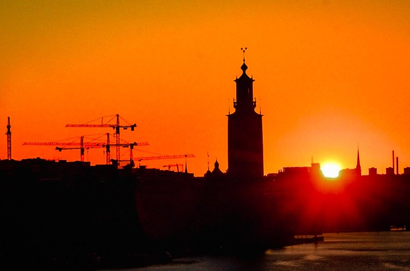 Vaknade tidigt på söndagsmorgonen och gav mig ut med kameran strax före soluppgången. Hann lagom upp på Långholmens högsta punkt för att få se solen gå upp kl 05:36 nära Stockholms Stadshus.