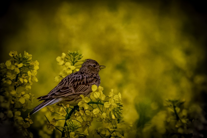 En annan anledning till att tillbringa drygt tre timmar vid ett rapsfält är att det var fullt med drillande lärkor. Ibland gömde Lärkorna sig nere i Rapsfältet för att sedan flyga upp mot skyn och drilla högljutt. Ett fantastiskt skådespel och upplevelse för både öga och öra.
