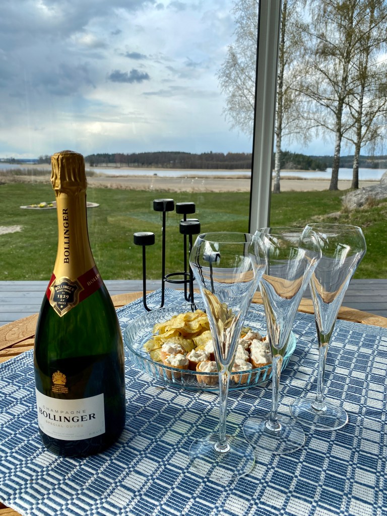 Måndag den 3 maj var Husbilen packat för min ”Walkabout” eller kanske ”Driveabout” på obestämd tid och enbart med grova planer i tanken om vart jag ska. Men det första målet var riktigt självklart och det var att jag skulle åka och hälsa på min mångårige kollega och framförallt vän, Lars-Åke. Han och hans fru har en sommarstuga vid norra Vättern vid Hjälmarnäs. Från den inglasade uteplatsen har man en underbar utsikt mot Stjernsunds slott nära Askersund. I min packning fanns även en flaska Bollinger Champagne som vi skulle dela på och fira min pensionering med.