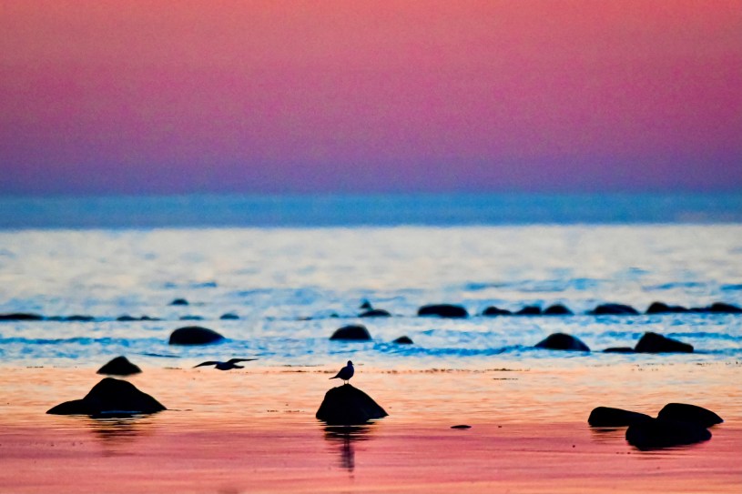 Funderade på om jag skulle köra tillbaka till Gräsgårds Hamn men kom istället fram till att Seby läge och Gammalsby strandängar kunde vara ett bättre alternativ att stå den första natten på Öland. Det gällde att försöka vara lite strategisk inför soluppgången dagen efter. Men jag nöjde mig inte med att vakna till soluppgången vid Seby läge utan satte klockan på 03:30 för att att kunna vara ute på strandängarna under den s.k Blå timmen innan soluppgången och ljusets ankomst. Klockan 4 på morgonen satt jag på strandängen nära vattnet och väntade in ljus som räckte till för att fånga både stämningen och lite fåglar. Eftersom fåglar hela tiden rör sig måste det ändå ha blivit ett visst ljus för att kunna fotografera med någorlunda kort exponeringstid. Måste säga att jag blev nöjd med resultatet.