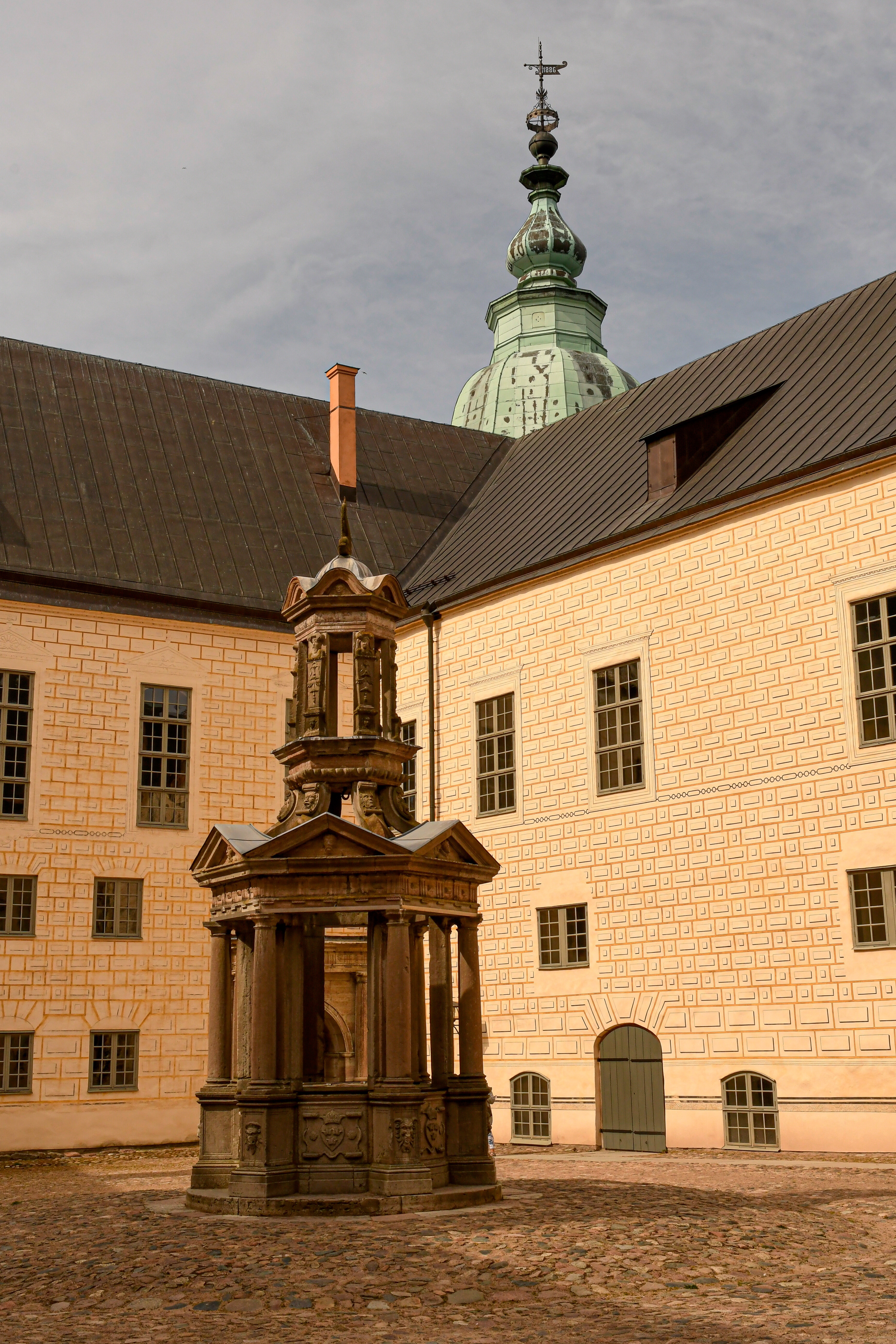 Den 14 maj åkte vi in till Kalmar med bilen och parkerade nära slottet. Slottet håller stängt helt och håller pga av pandemin. Men det går givetvis att gå inne på Borggården samt uppe på vallarna. När vi parkerade bilen stod vi nära restaurang Söderport och blev sugna på att äta vår lunch där. De öppnade kl 12 så vi hann med att gå runt i Slottsparken en stund och titta på vackra träd och blommor. Även en sväng inne på Konstmuseets utställningar som hade öppet för max 8 besökare åt gången.