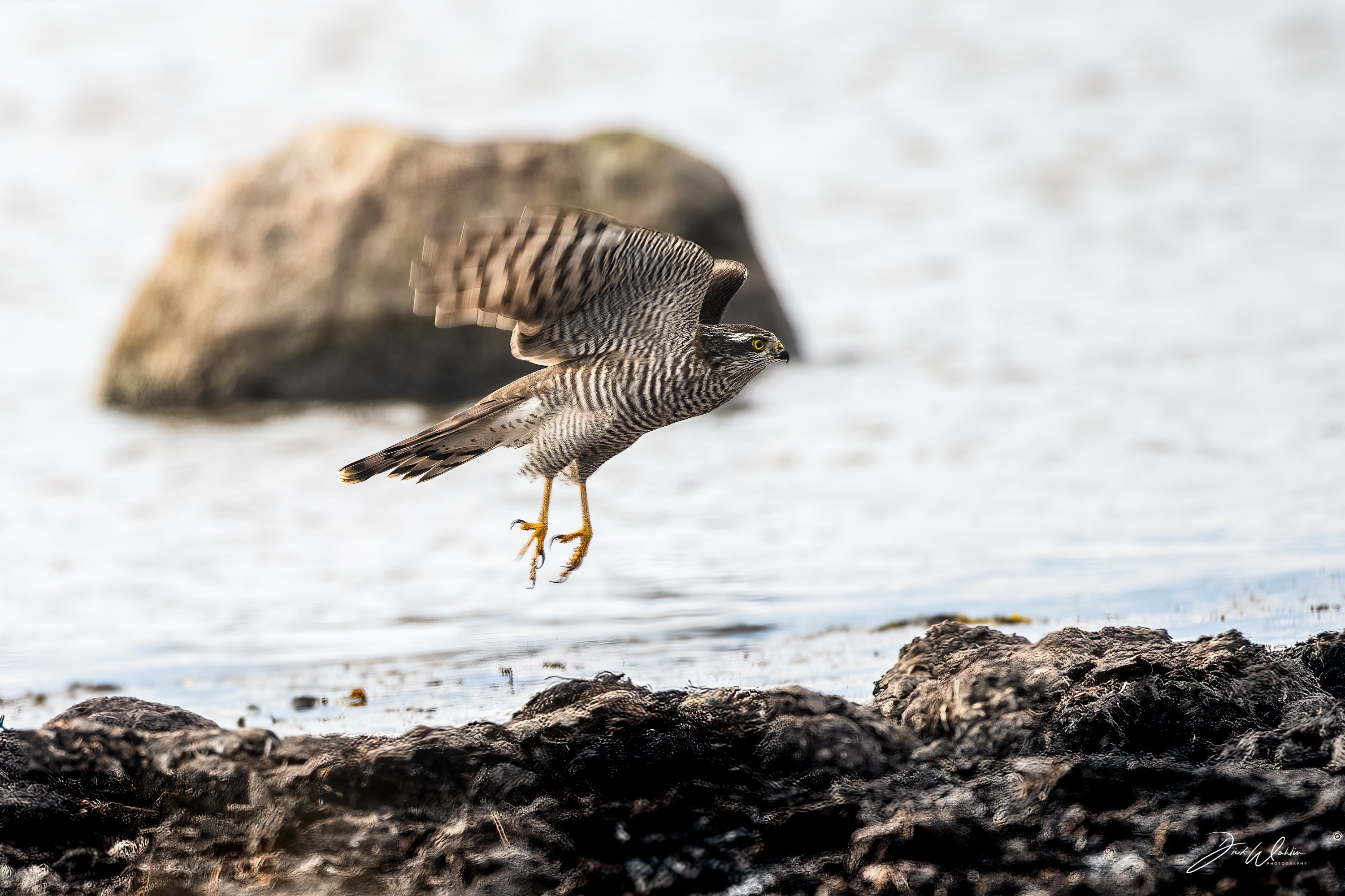När jag gjorde så vid Eckelsudde, satt dold med mitt Påsgömlse och fotograferade. Plötsligt blev det tomt på stranden. Men den här gången såg jag inte alls var alla fåglar försvann. Efter en stund förstod jag varför, när jag såg den här Sparvhöken sitta rakt framför mig. Tydligen hade han misslyckats mitt sitt syfte för han hade inget byte där han stod och ungefär som jag funderade över vart alla fåglar var
